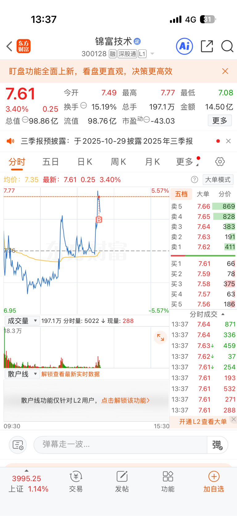 $锦富技术(SZ300128)$ 各位对不起了,又挂山顶了