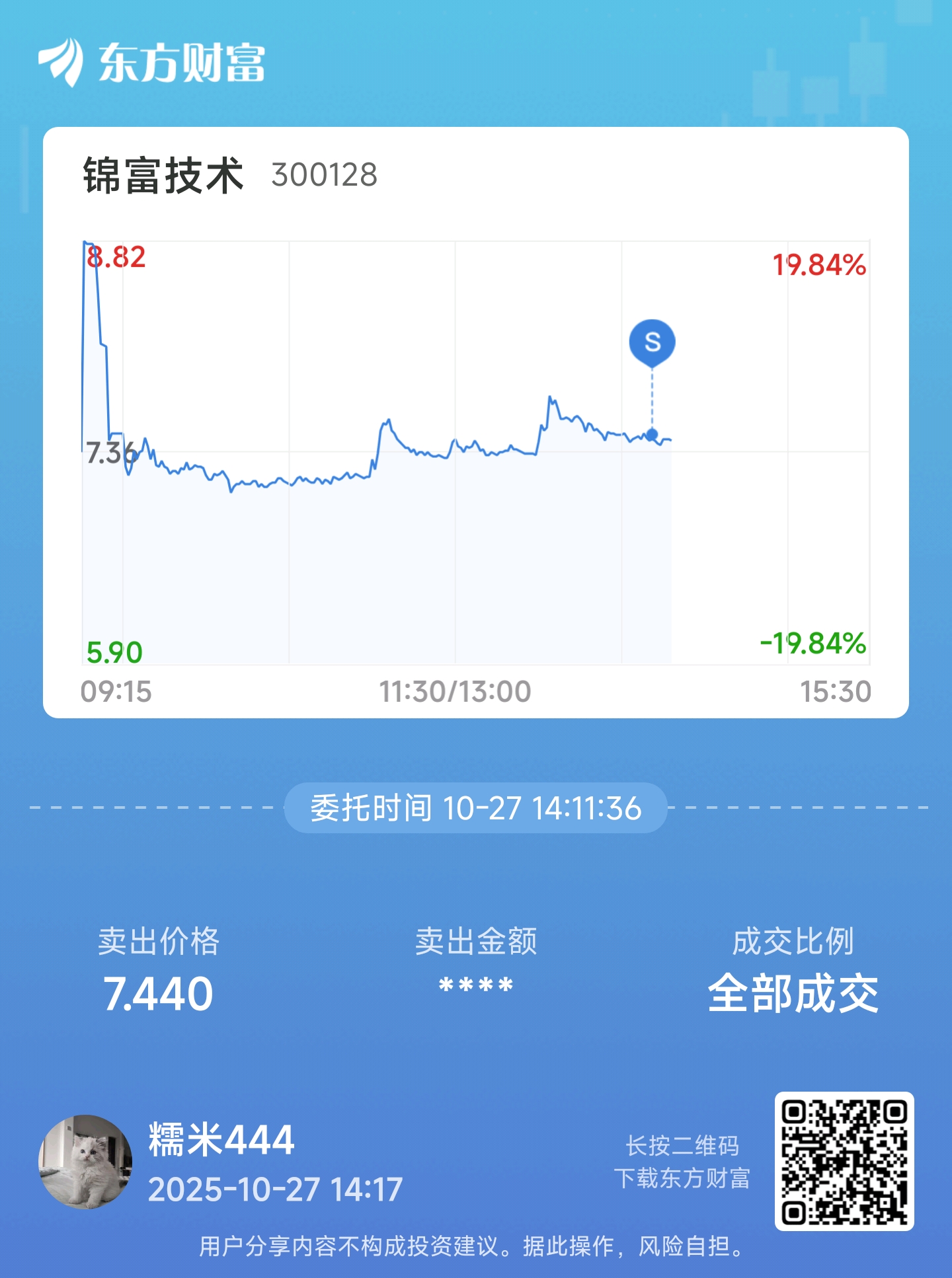 温馨提示: 1.根据《证券法》规定,禁止编造、传播虚假信息或者误导性信息,扰乱证券市场;2.用户在本社区发表的所有资料、言论等仅代表个人观点,与本网站立场无关,不对您构成任何投资建议。用户应基于自己的独立判断,自行决定证券投资并承担相应风险。《东方财富社区管理规定》