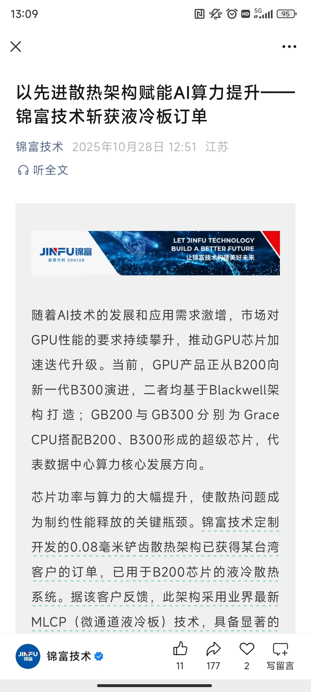 $锦富技术(SZ300128)$ 斩获液冷新订单。
