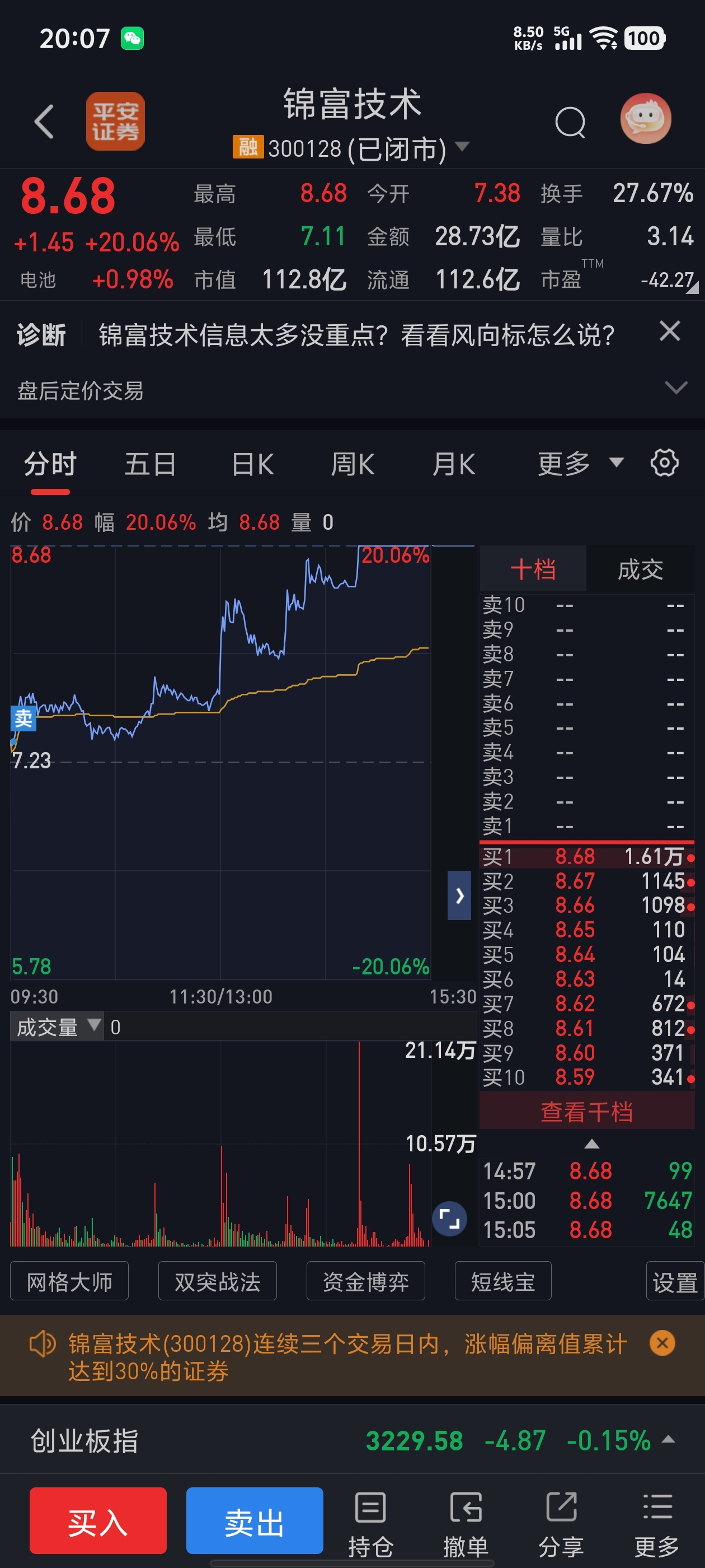 $锦富技术(SZ300128)$ 抄底成功