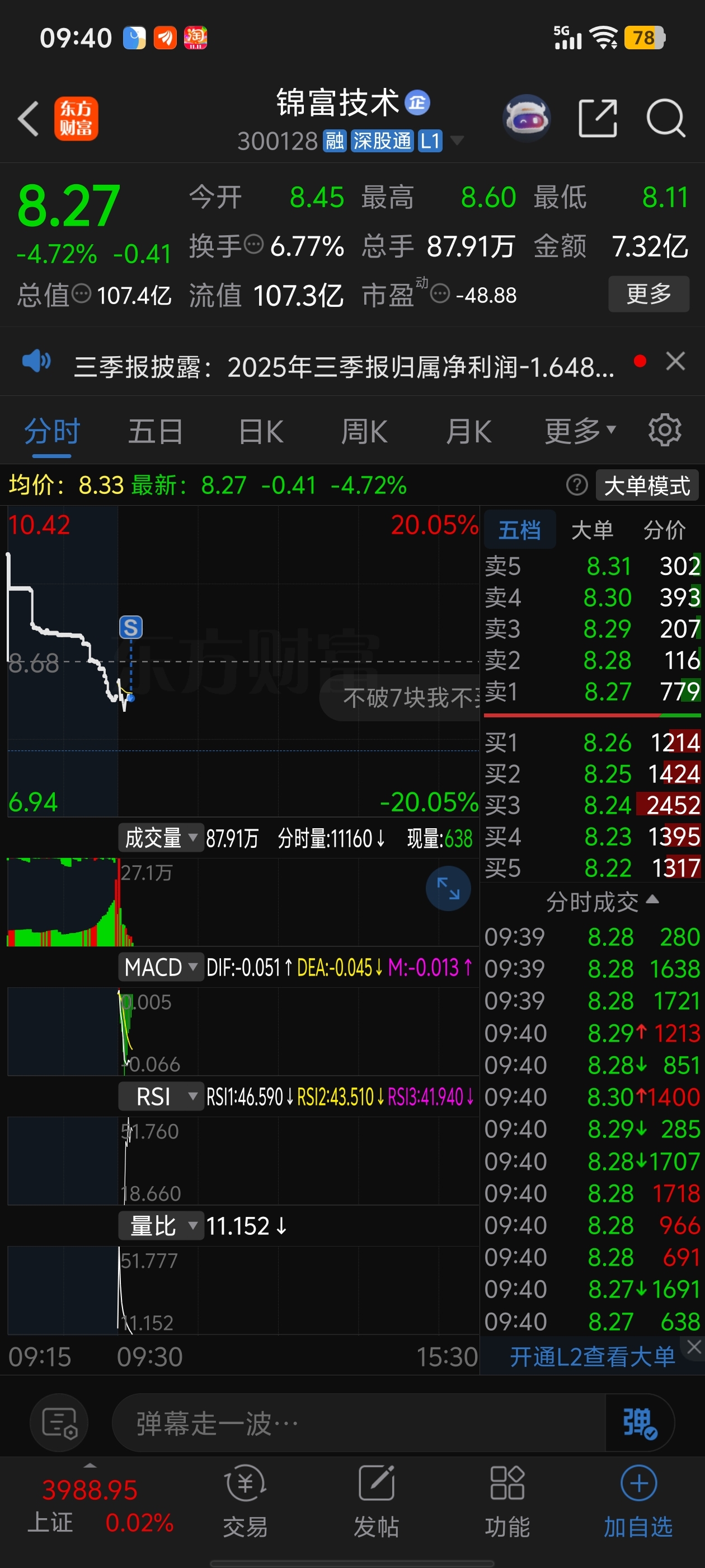 $锦富技术(SZ300128)$ 昨天打板进的,今天长记性了,放量的不能接盘。