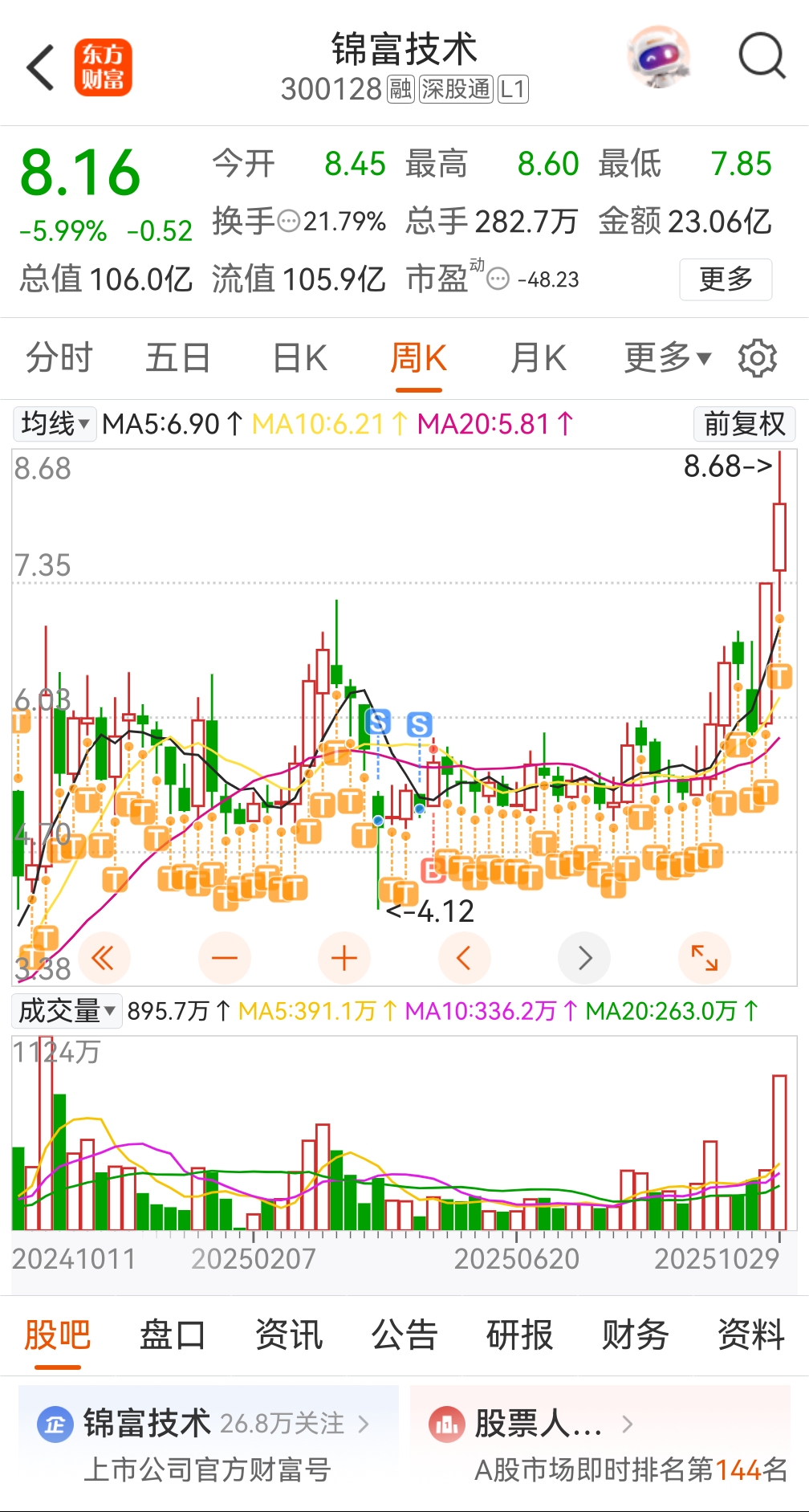 $锦富技术(SZ300128)$ 这股票真的以前无人问津的,我买了三年了也就这两次20%.平时只能做做五分钱,好的时间几毛的T
