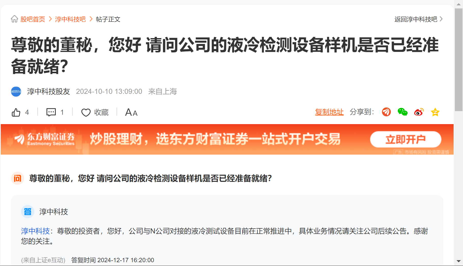 温馨提示: 1.根据《证券法》规定,禁止编造、传播虚假信息或者误导性信息,扰乱证券市场;2.用户在本社区发表的所有资料、言论等仅代表个人观点,与本网站立场无关,不对您构成任何投资建议。用户应基于自己的独立判断,自行决定证券投资并承担相应风险。《东方财富社区管理规定》