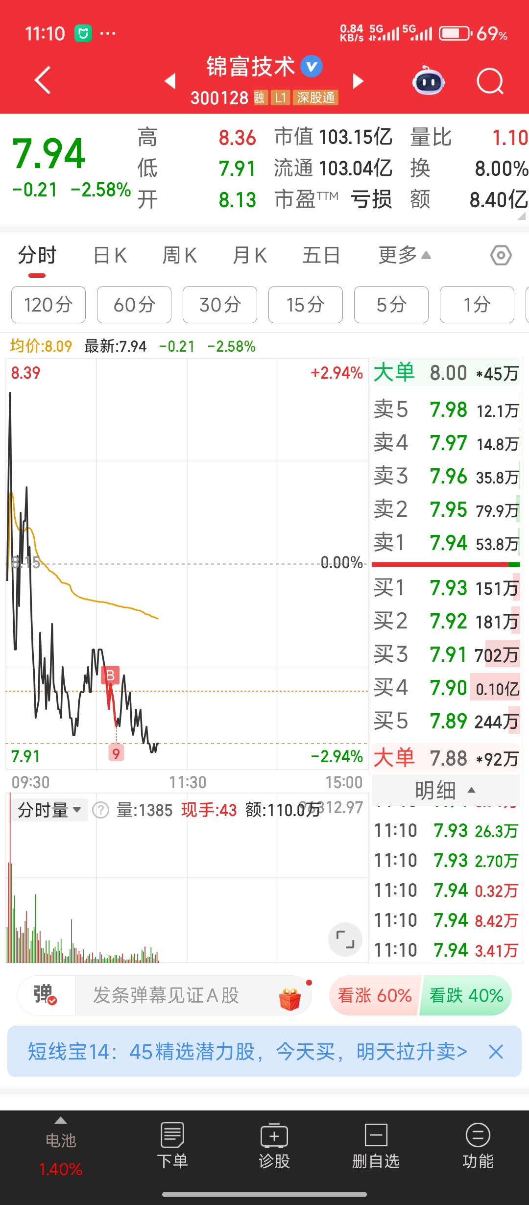 $锦富技术(SZ300128)$ 刚买就被套,可有兄弟们陪我一下