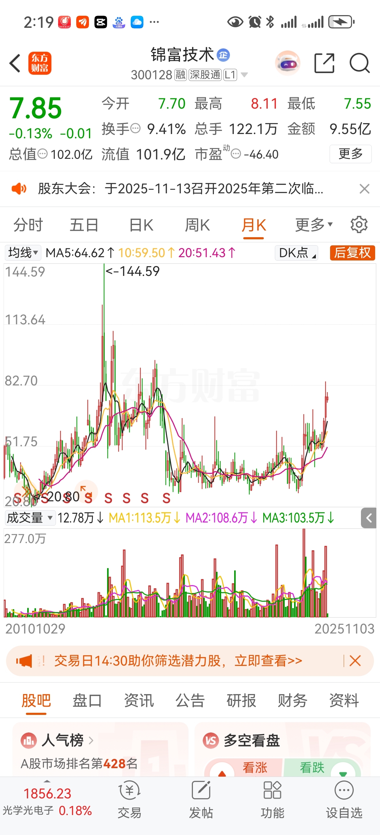 $锦富技术(SZ300128)$ 去年到现在已经三倍了,连续五年亏损