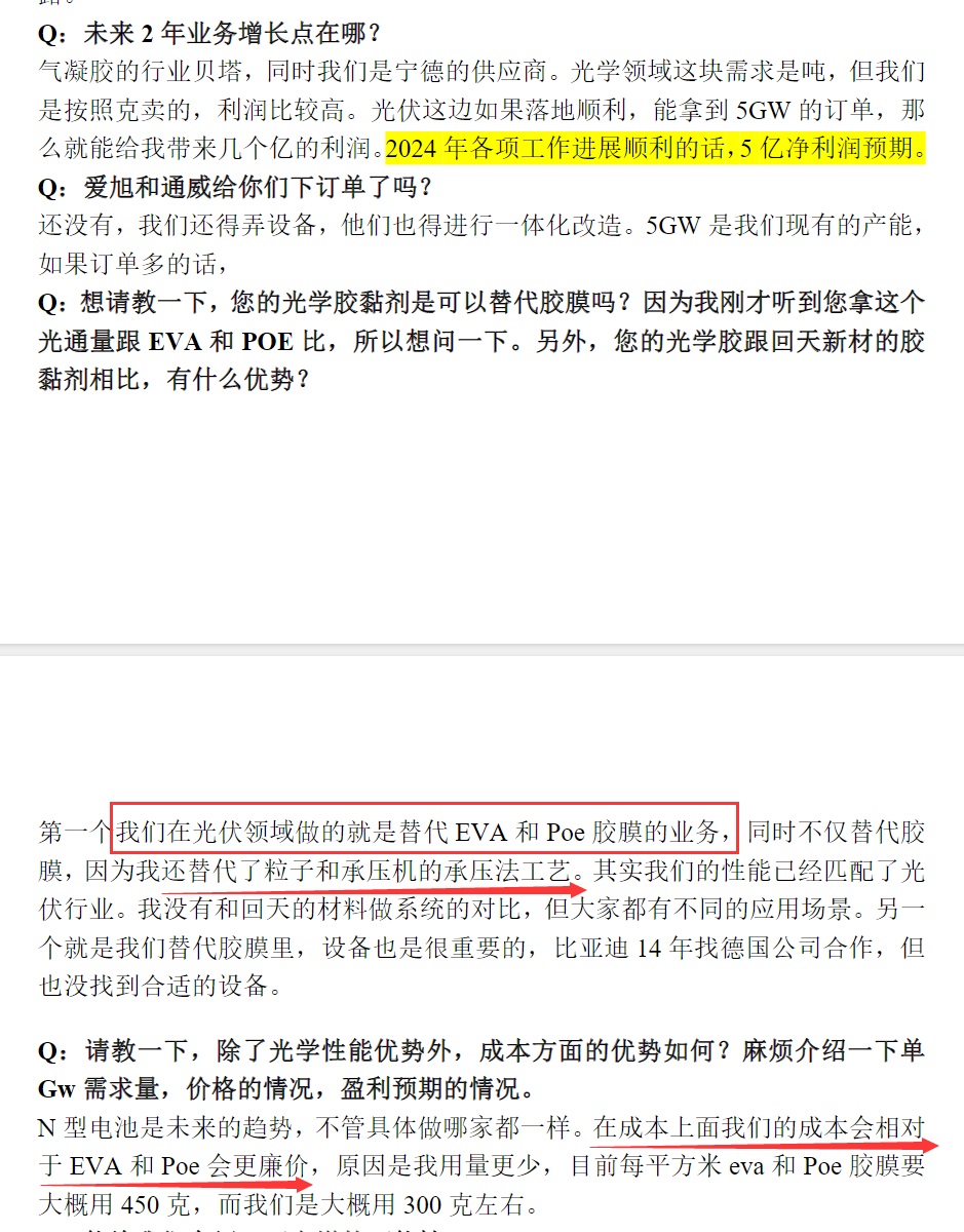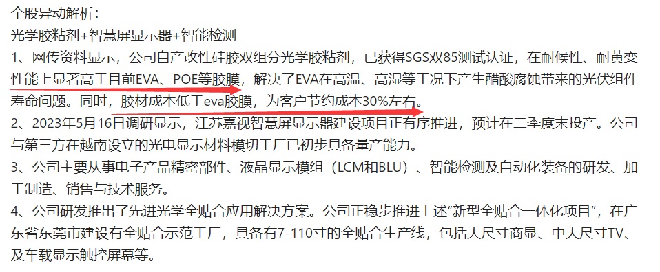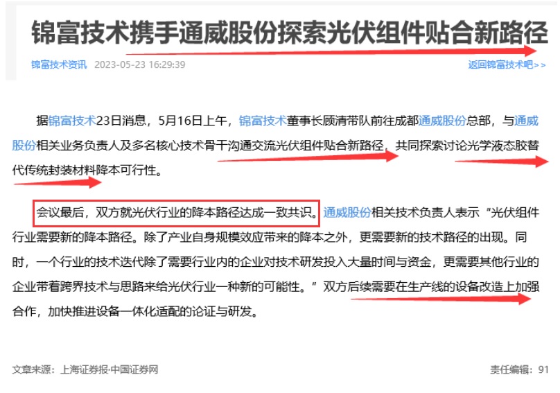 就此,可以确认,锦富技术正在联合多家光伏上市公司开发替代EVA和POE的新组件封装材料!