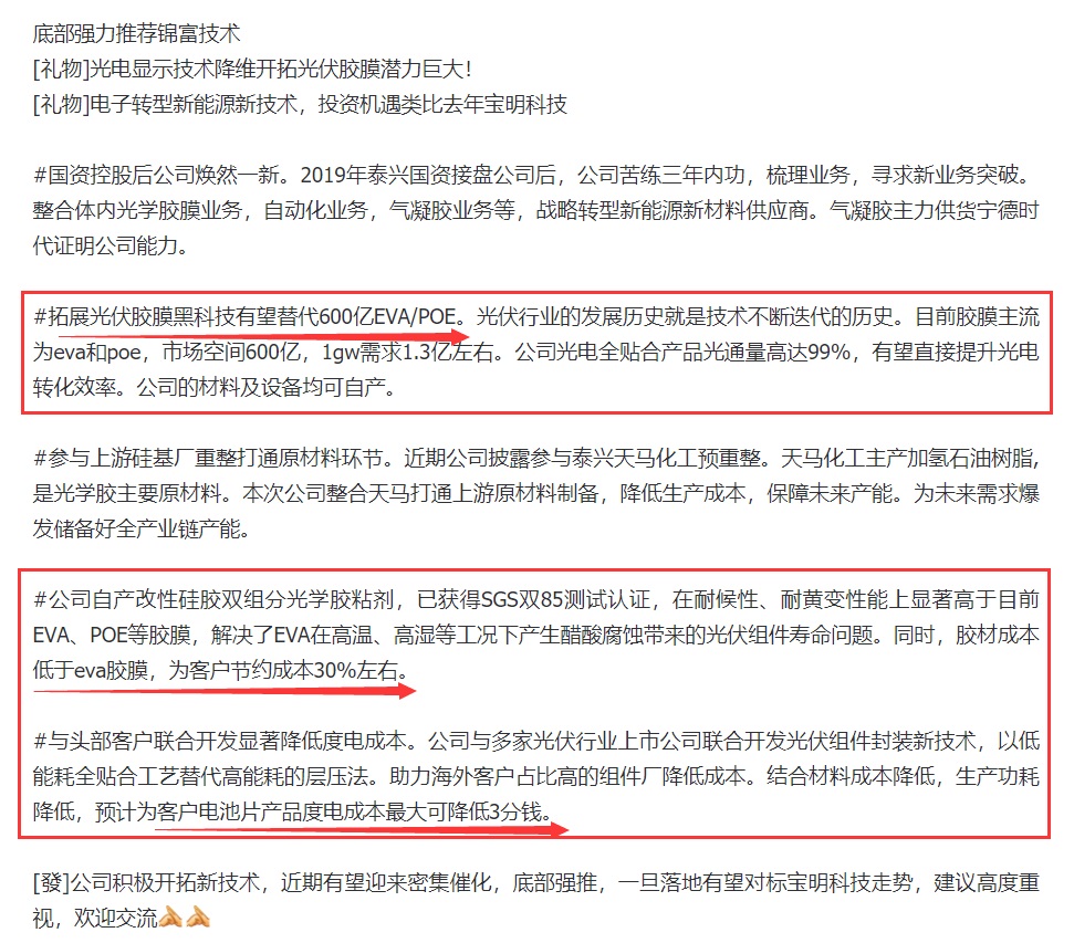 按照上图里说的,现在锦富技术的新材料性能优于EVA和POE,成本还低30%,那这岂不是光伏革命性新技术?!
