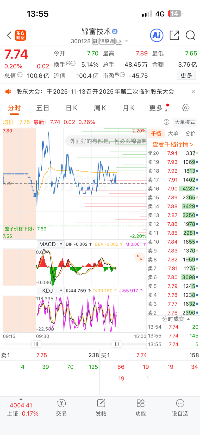 $锦富技术(SZ300128)$ 全是几千手的压单,生怕涨一分钱了