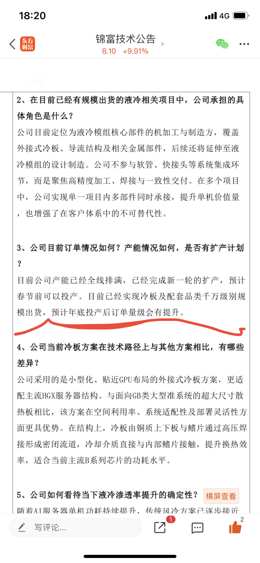 $锦富技术(SZ300128)$ 特大利好!订单已经排满,新产能也年前满上!!!技术形态上,底部放量起飞!这波,20元,保底啊!叠加液冷是跟大盘共振的板块!稳了!明天想进的,要看手速了!!$乾照光电(SZ300102)$ $平潭发展(SZ000592)$