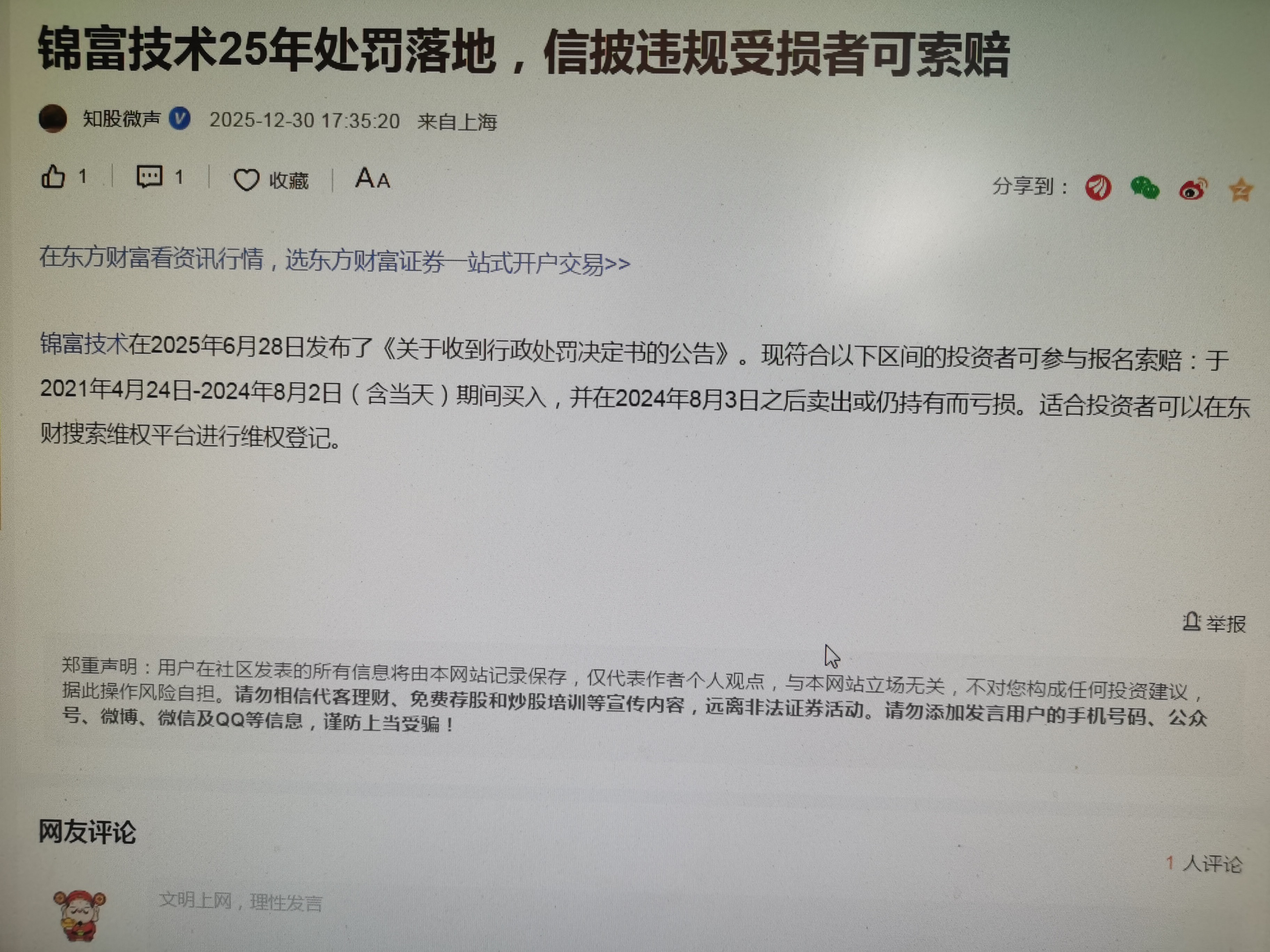 锦富是否能公布一下目前维权索赔的具体进展情况?具体多少人,涉及三年投资者损失总额