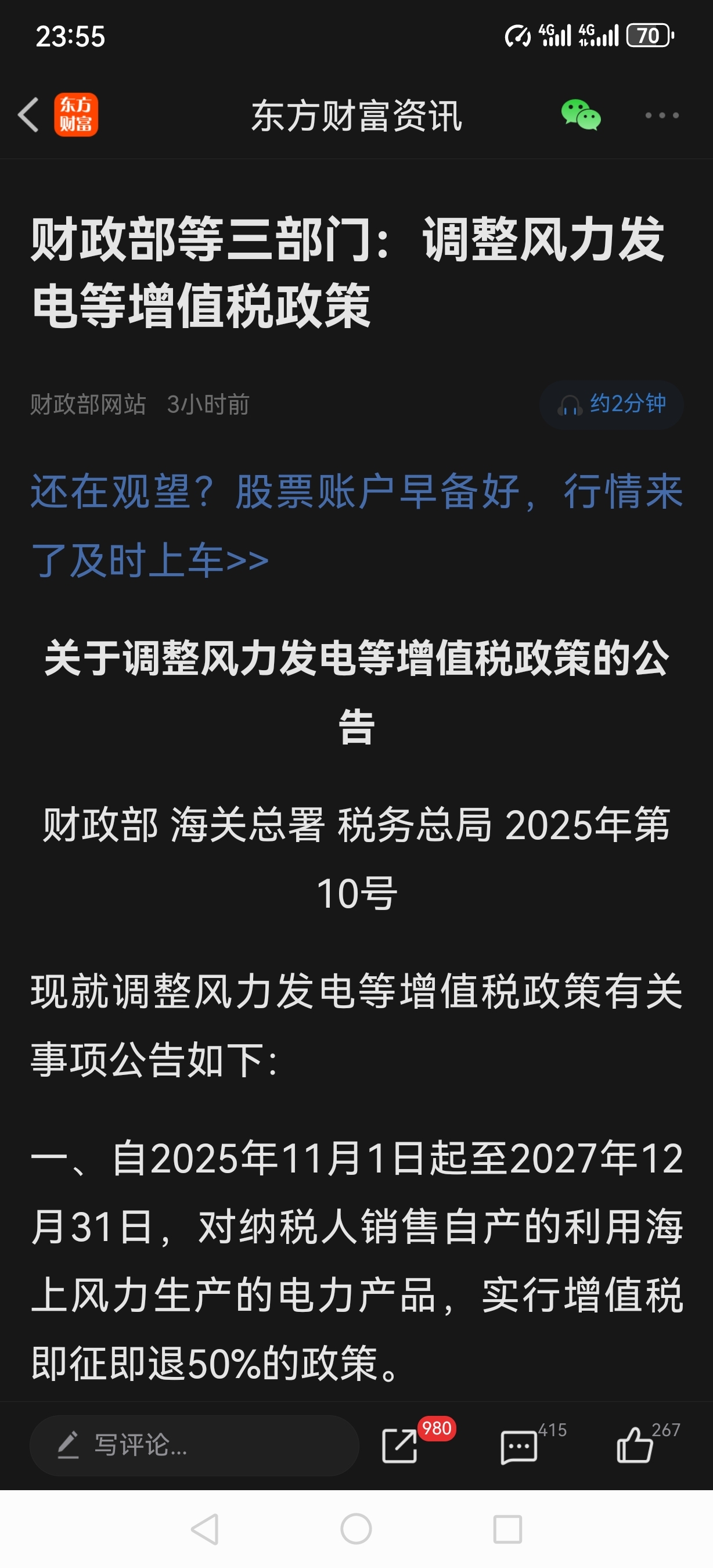$泰胜风能(SZ300129)$ 风电大利好来了。