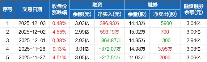 泰胜风能:融资净买入386.93万元,融资余额3.03亿元(12-03)