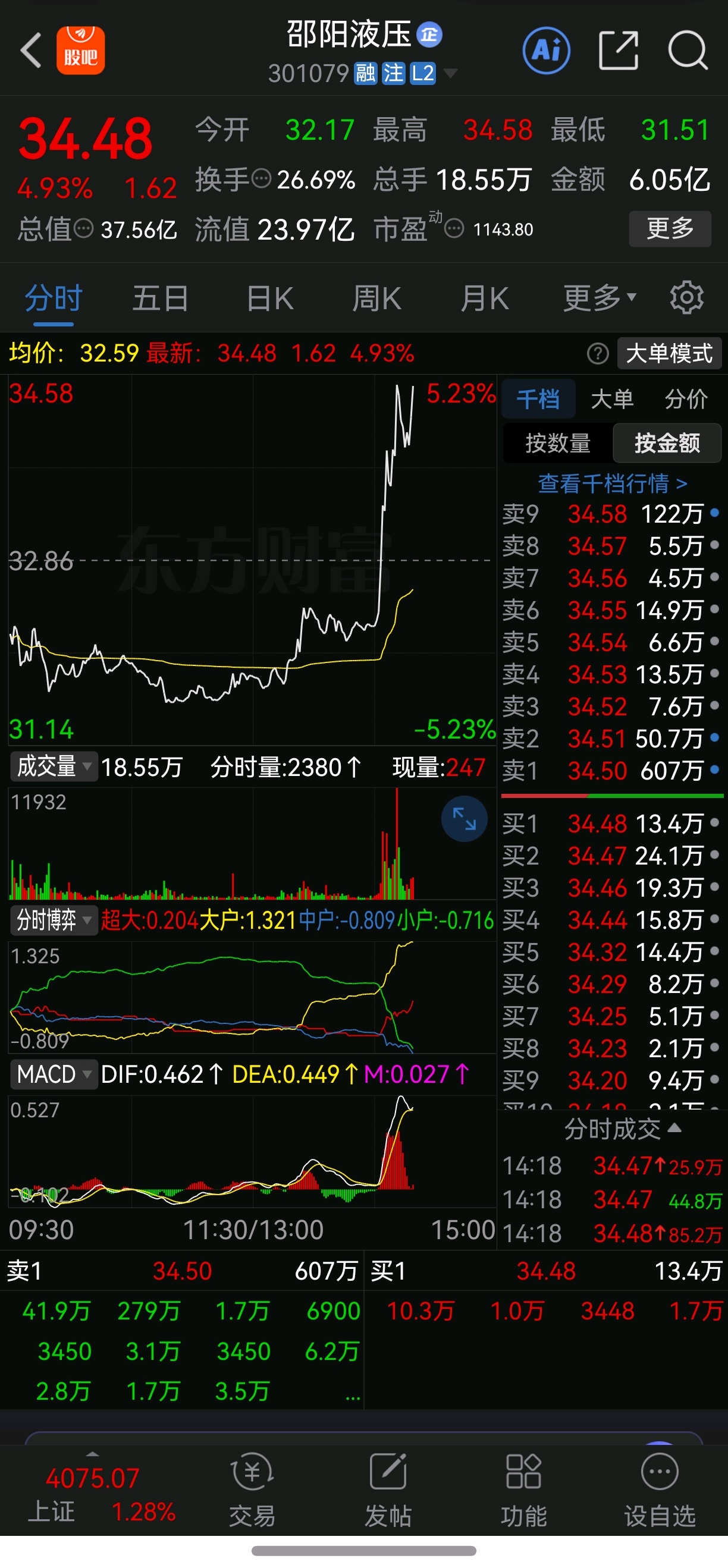 $泰胜风能(SZ300129)$ 泰胜和$邵阳液压(SZ301079)$ 在两点时的这个主动拉升,怎么说呢,有标杆意义,起码激活了整个商业航天的回流,也救了很多票。这俩票还是低位,主动拉升,强烈建议关注,后市可期。$陕西华达(SZ301517)$