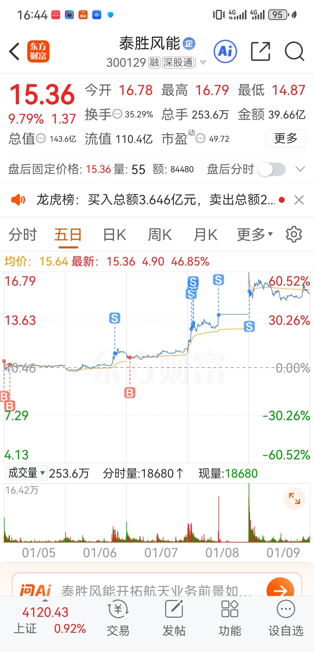 $泰胜风能(SZ300129)$ 静待回调
