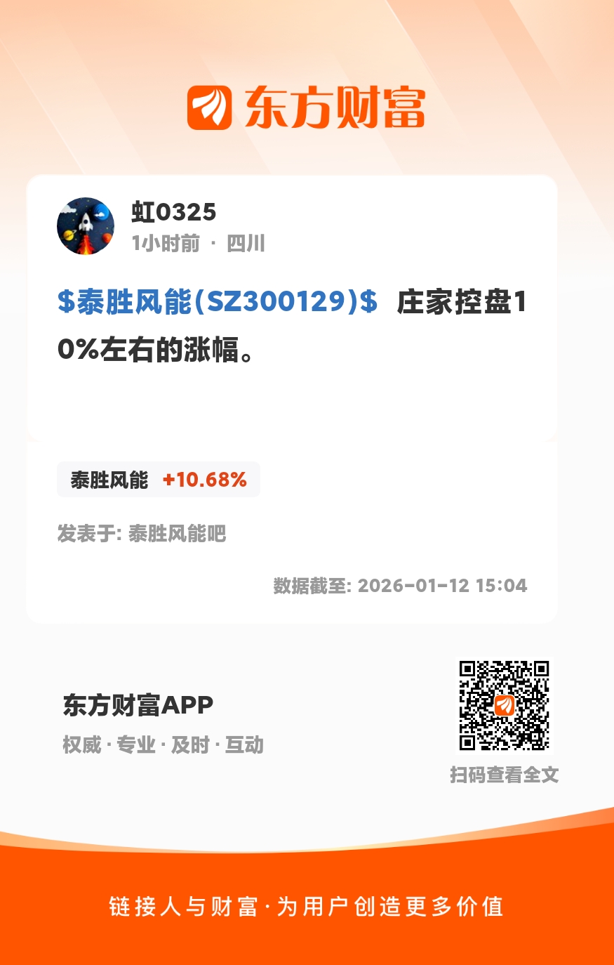 $泰胜风能(SZ300129)$  庄家控盘10%左右的涨幅。