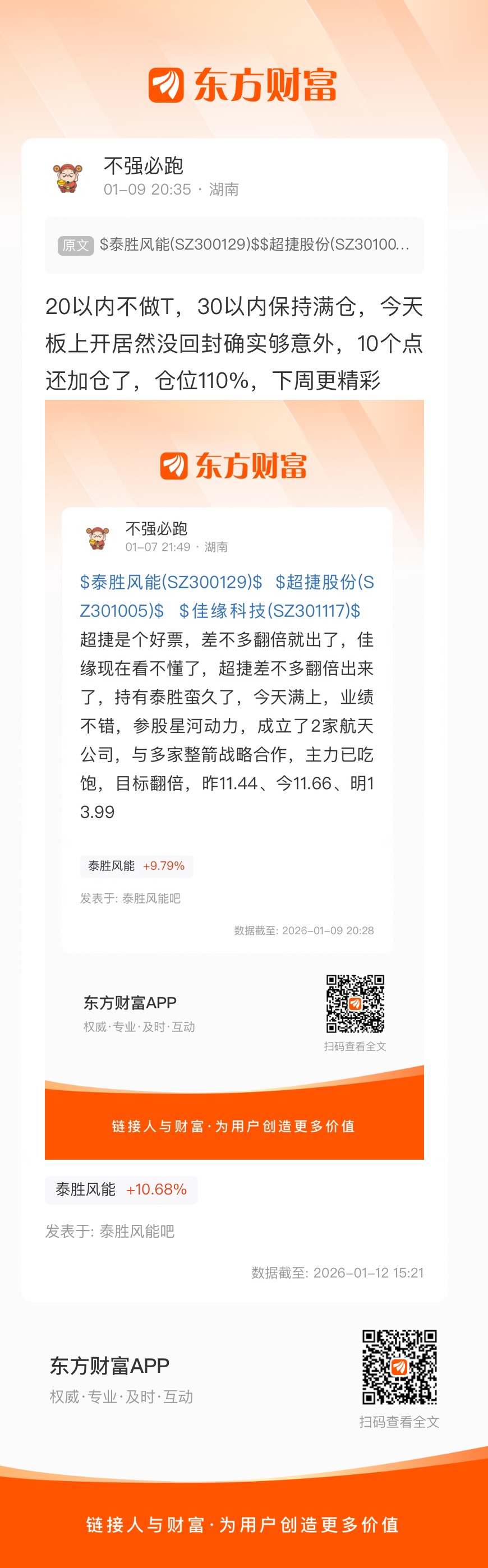 20以内不做T,30以内保持满仓,今天板上开居然没回封确实够意外,10个点还加仓了,仓位110%,下周更精彩