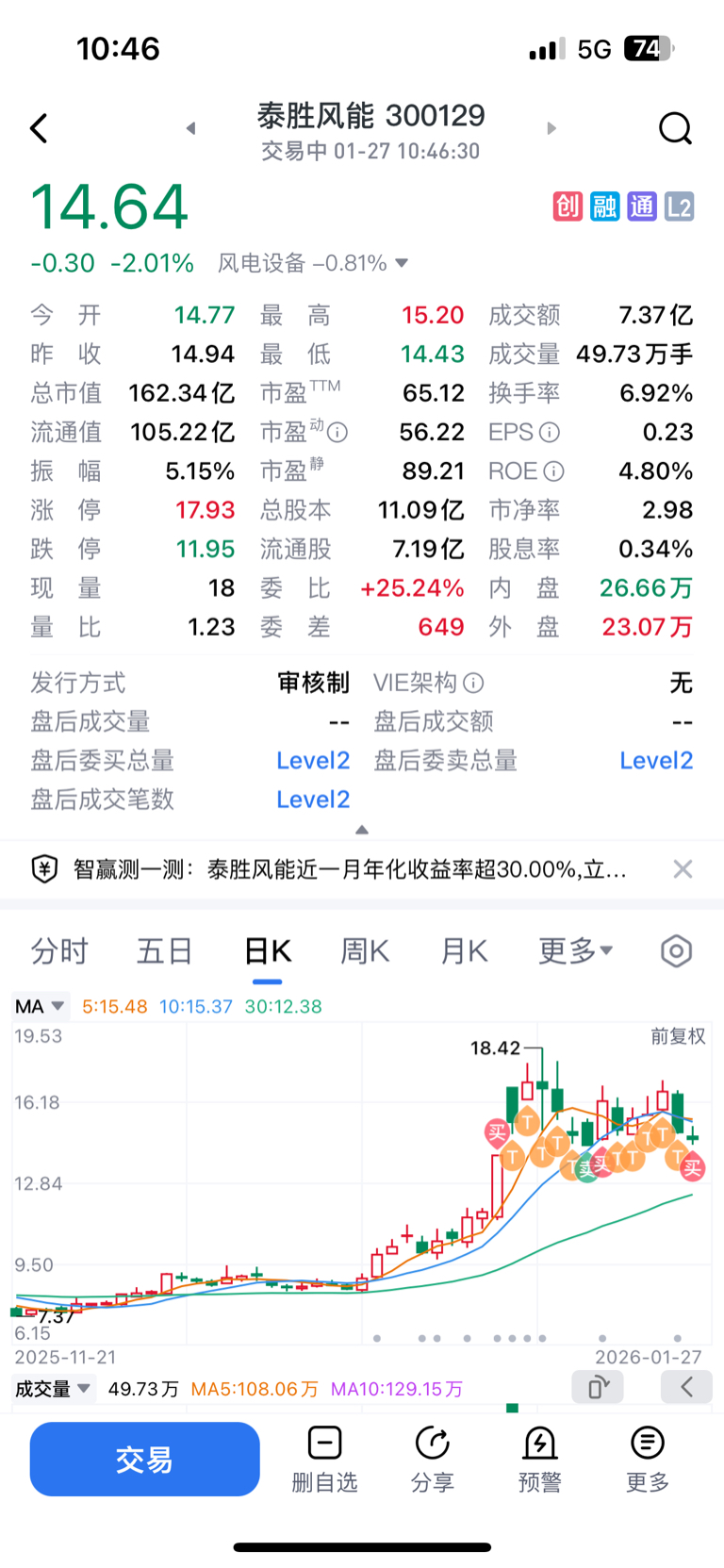 $泰胜风能(SZ300129)$ $蓝色光标(SZ300058)$ $*ST立方(SZ300344)$ 本来想过几天再回泰胜的,不过看这两天跌这么猛就再买一些,等着做t
