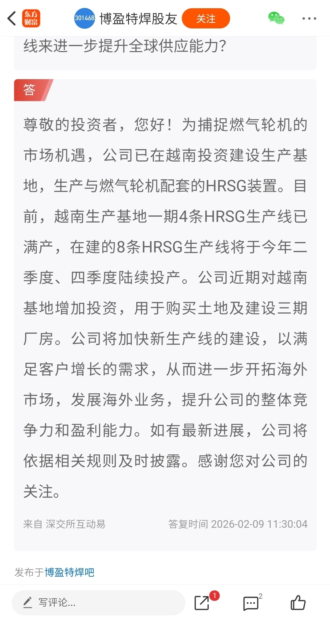 博盈特焊一个卖500万美金,一期满产,二期还在建设,马上规划三期,而泰胜风能一个