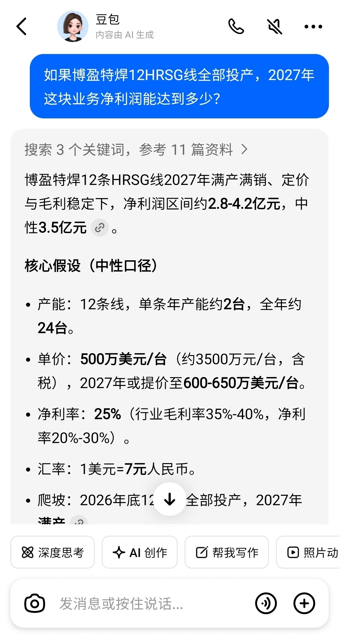 $泰胜风能(SZ300129)$ 博盈特焊一个卖500万美金,一期满产,二期还在建设,马上规划三期,而泰胜风能一个只能卖250万到500万,60套达到满产,每年只有1.5亿到3亿产值,而博盈特焊一二期满产就能达到6000万美金。