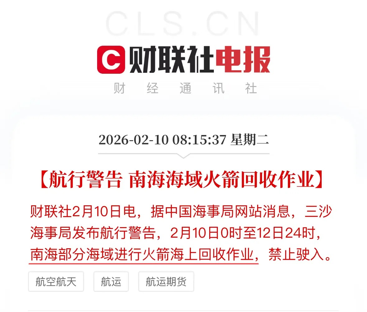 国家海事局最新公告』火箭回收作业 2月11日重大事件发生