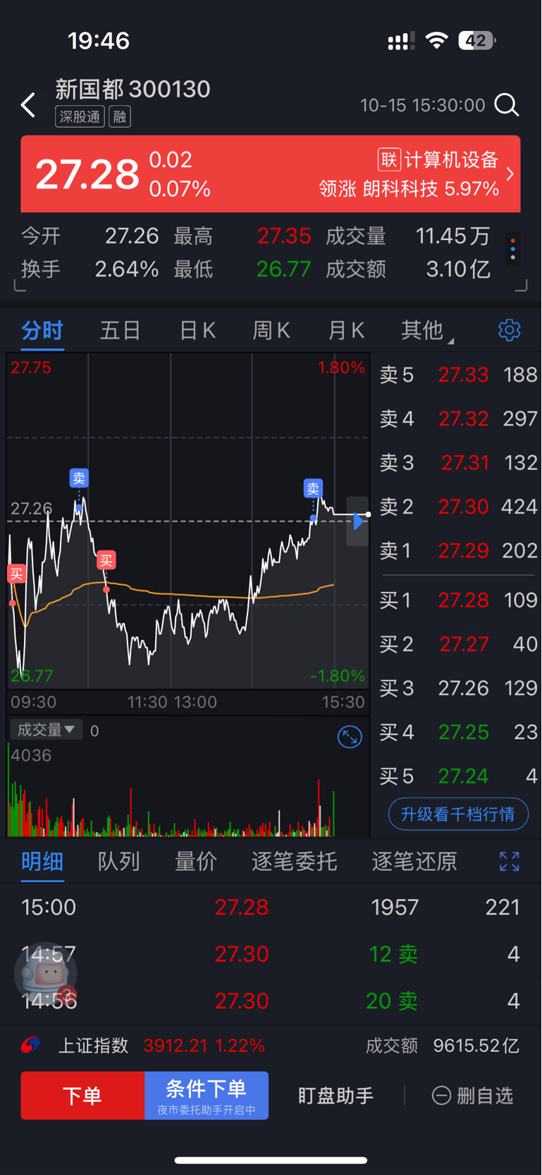 今天这两波T做的我都佩服自己,26.83进,27.31出,连续两次都成功,