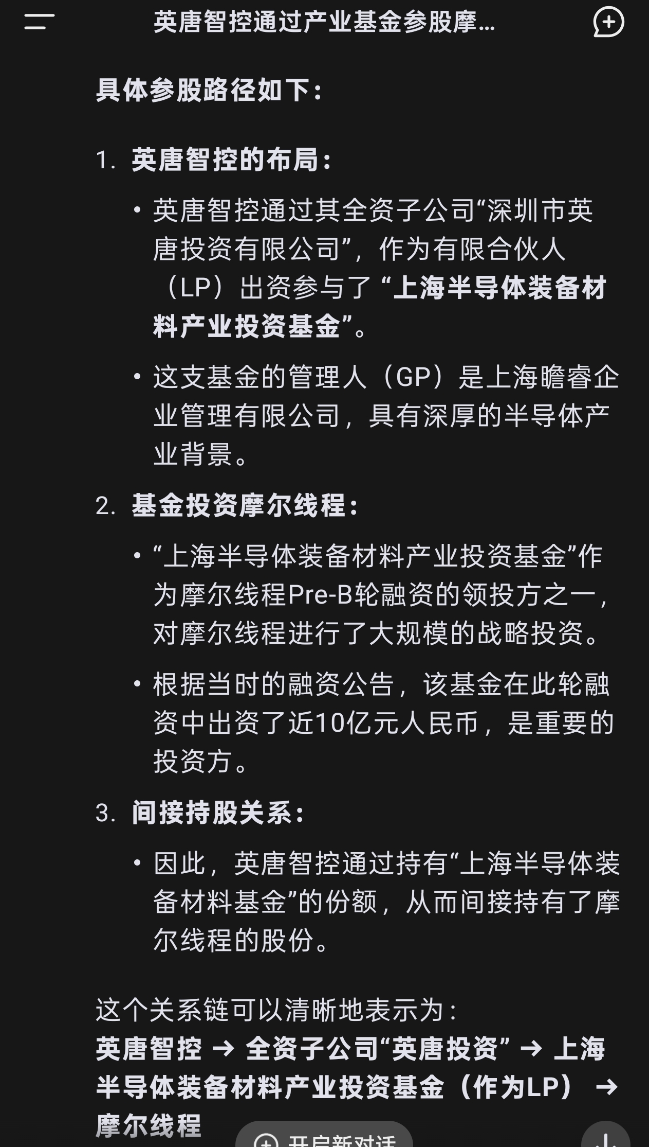 $英唐智控(SZ300131)$ 真的的摩尔线程都股东
