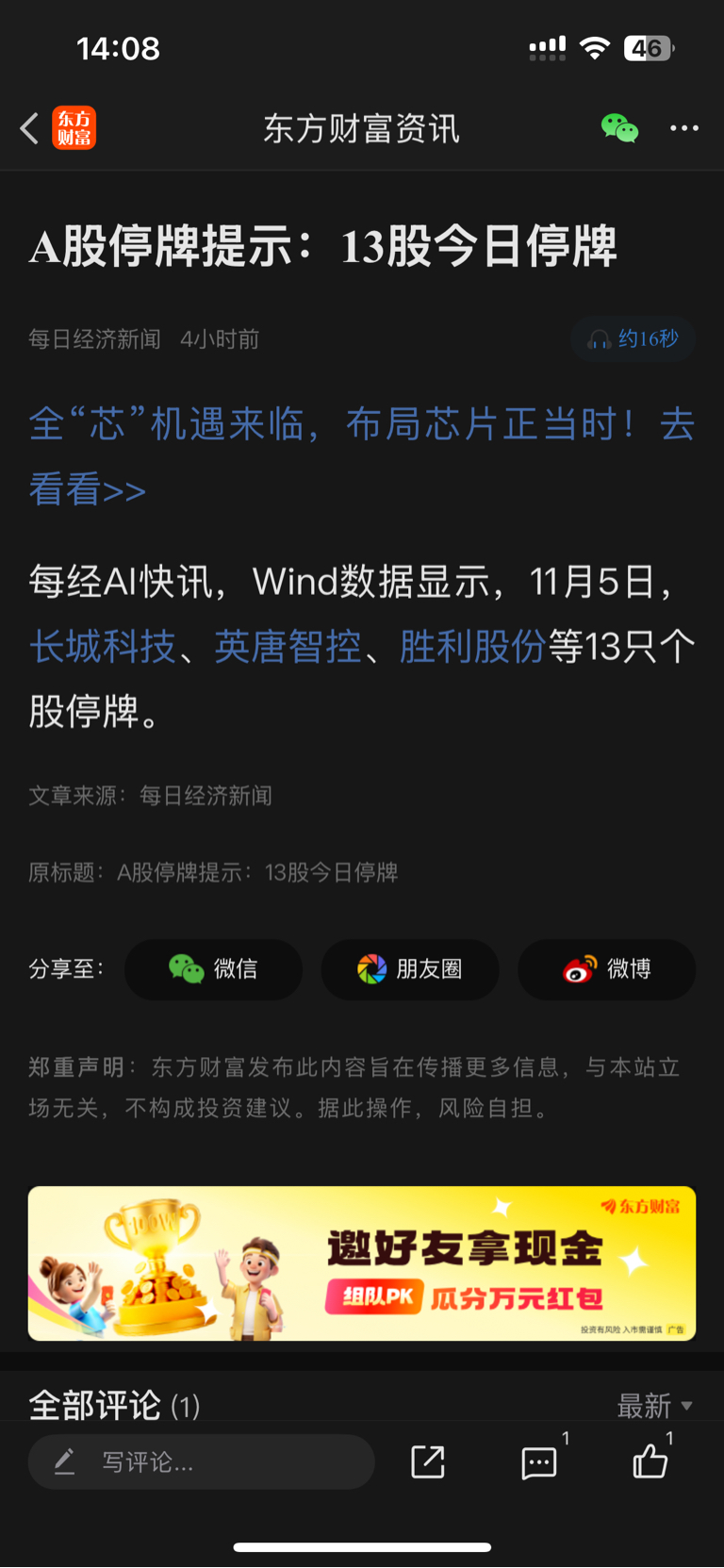郑重声明:用户在财富号/股吧/博客等社区发表的所有信息(包括但不限于文字、视频、音频、数据及图表)仅代表个人观点,与本网站立场无关,不对您构成任何投资建议,据此操作风险自担。请勿相信代客理财、免费荐股和炒股培训等宣传内容,远离非法证券活动。请勿添加发言用户的手机号码、公众号、微博、微信及QQ等信息,谨防上当受骗!