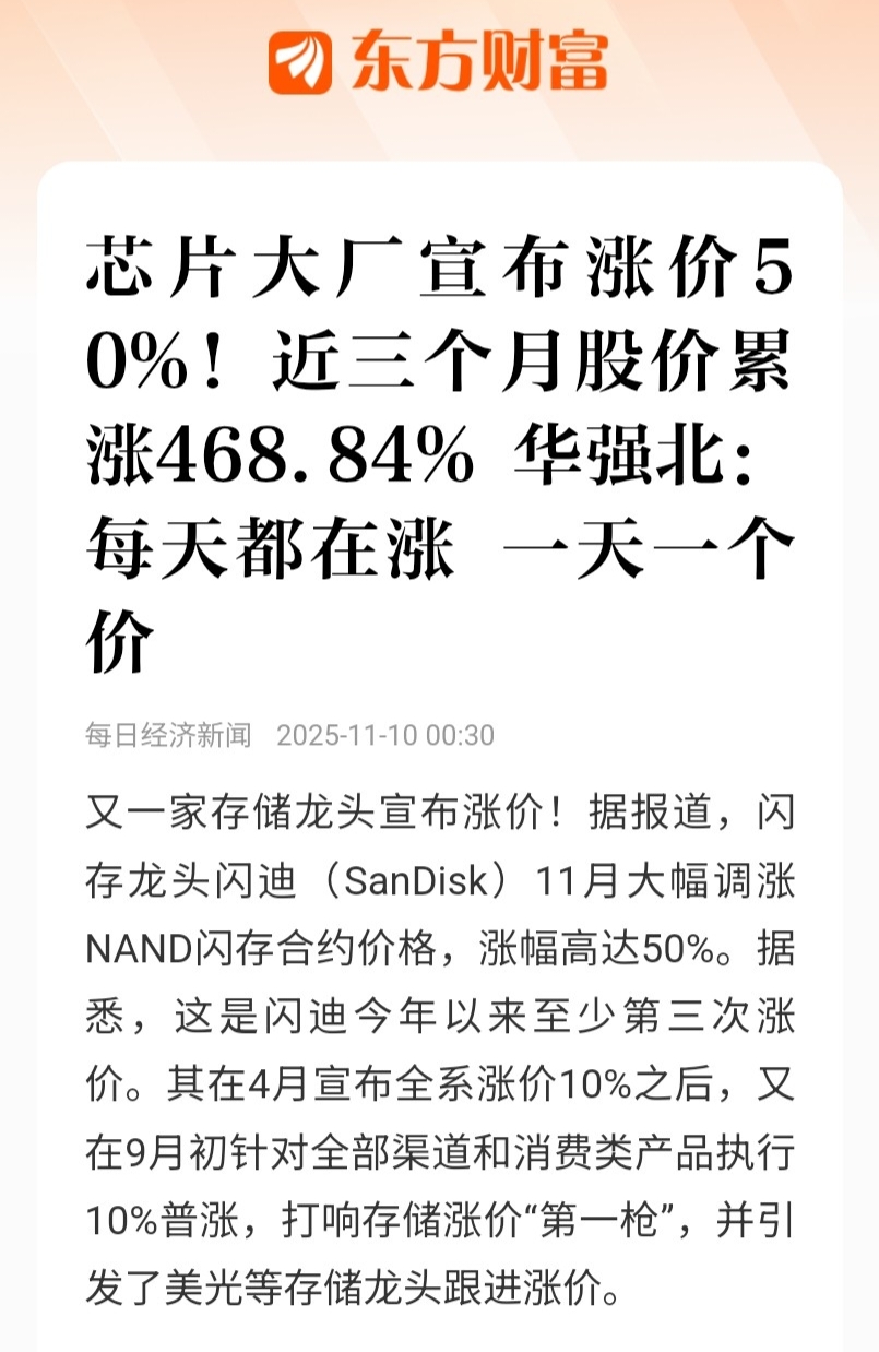 厉害了,闪迪也宣布涨价50%!那英唐6个亿库存这次得纯赚多少钱?不仅DRAM和N