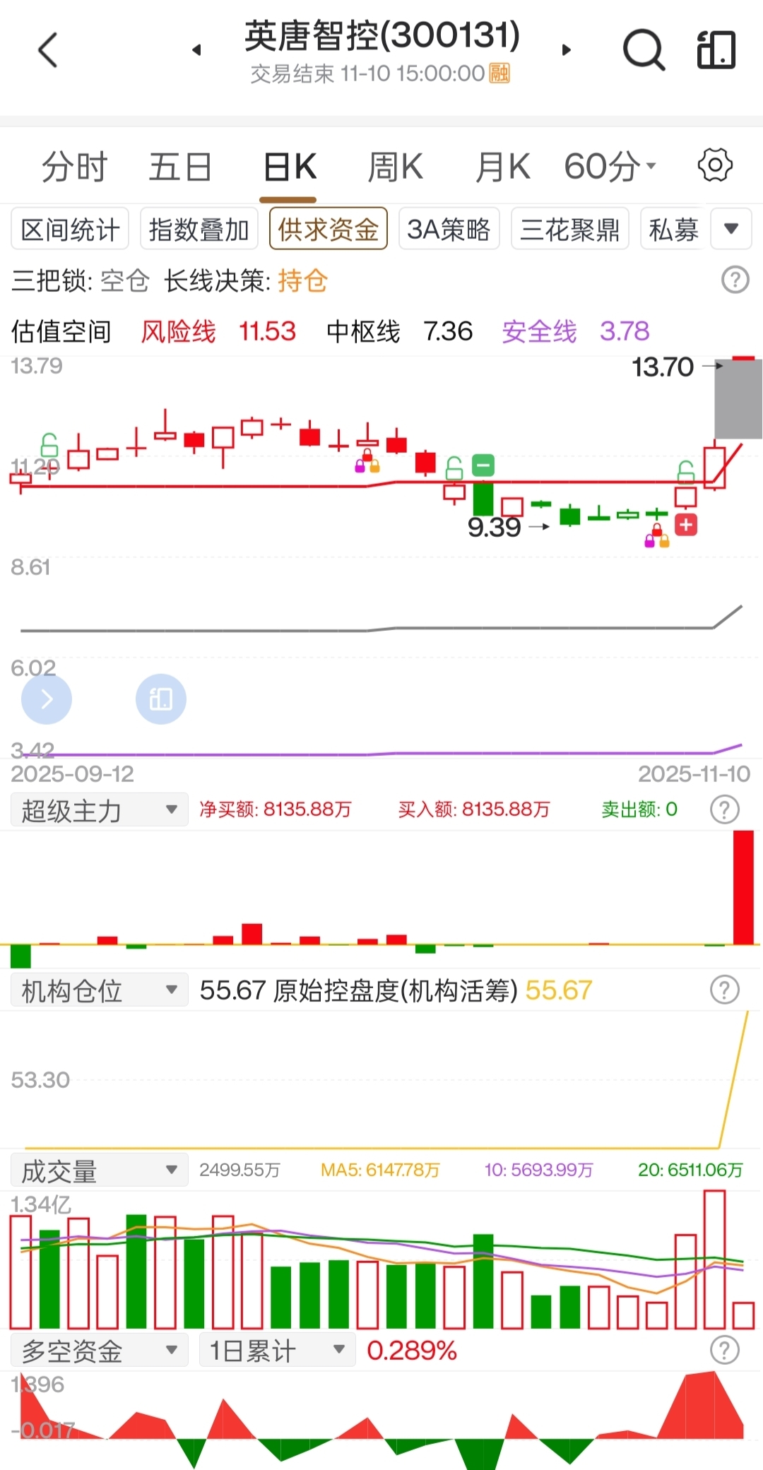 $英唐智控(SZ300131)$ 今日一字涨停,机构容易卖出,但不能主动买进。今日超级主力买入额为8135.88万元,机构资金仓位增至55.67%