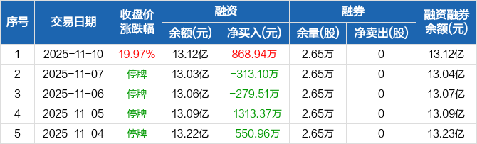 英唐智控:融资净买入868.94万元,融资余额13.12亿元(11-10)