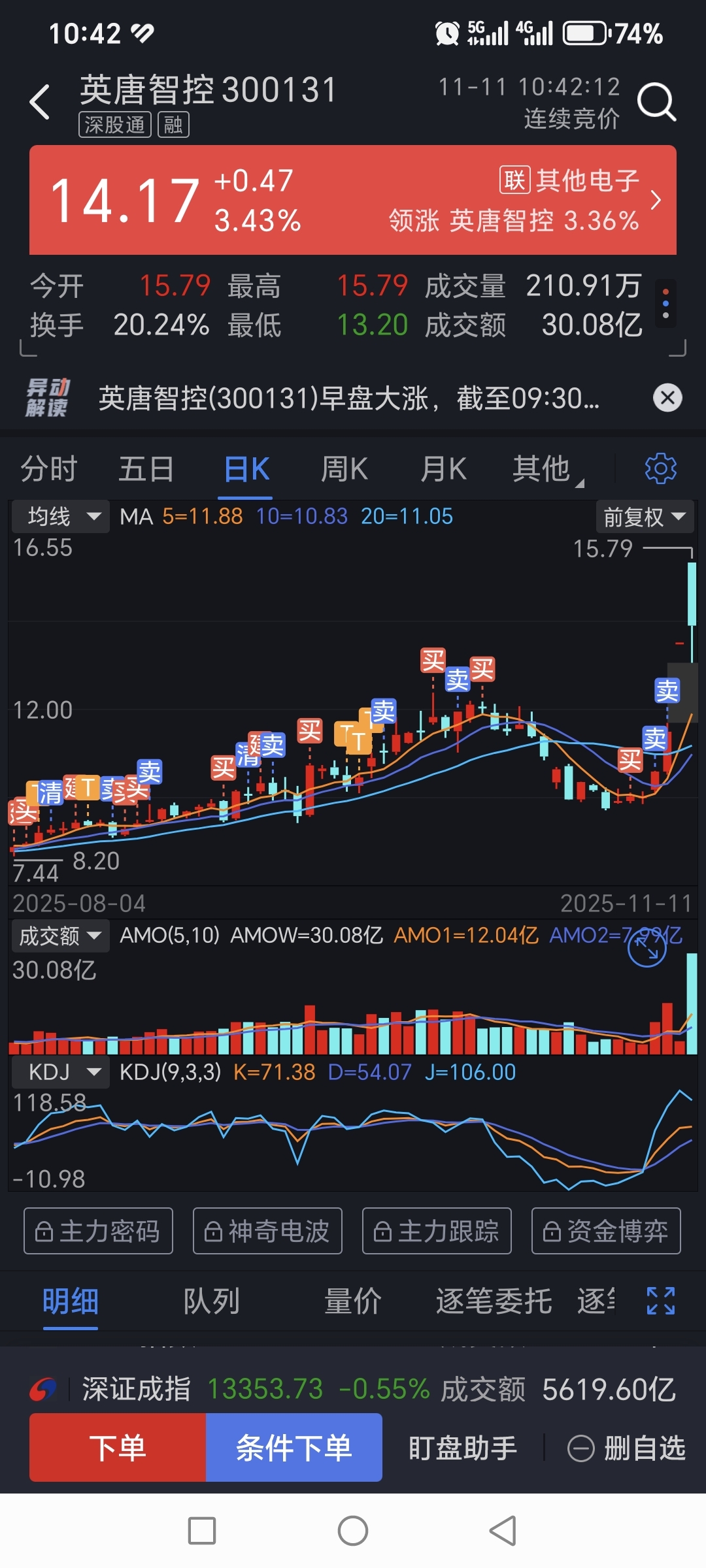 $英唐智控(SZ300131)$ 我还加仓了,因为还没有解套。停盘前,以为要调整一天,就留了点底仓。