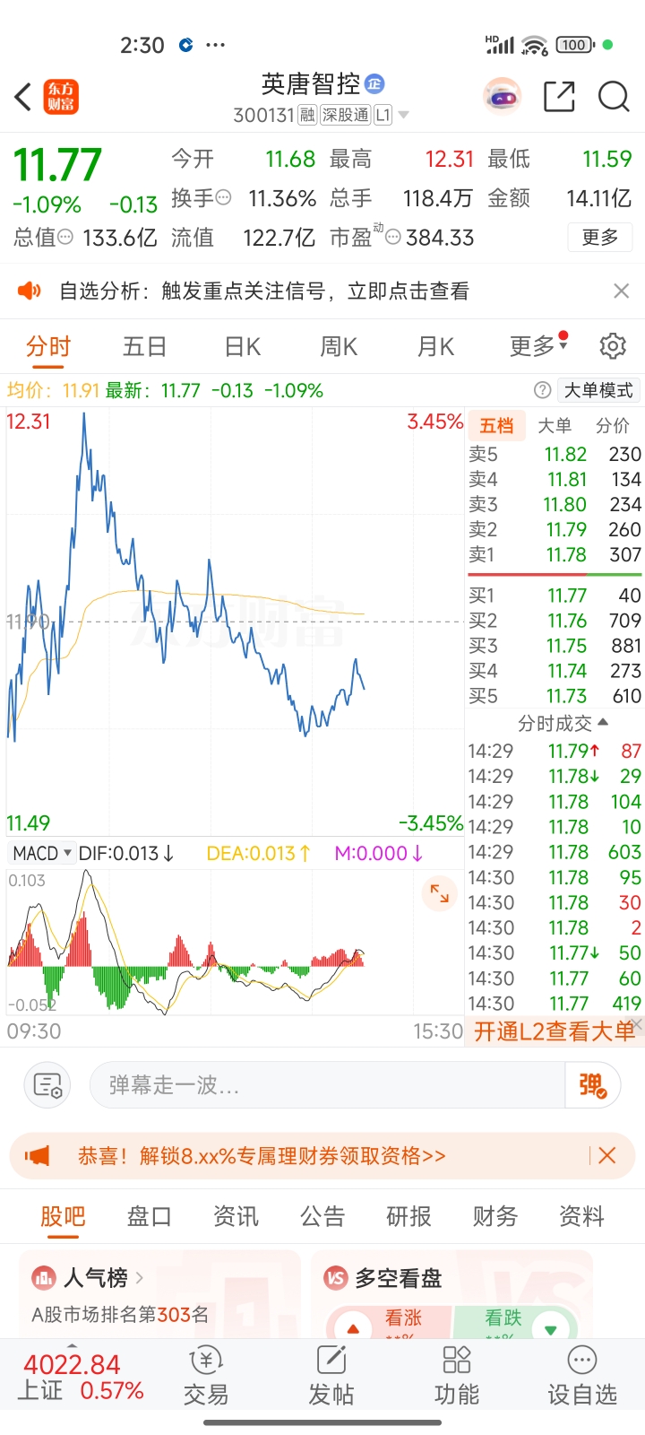 $英唐智控(SZ300131)$ 没人买的