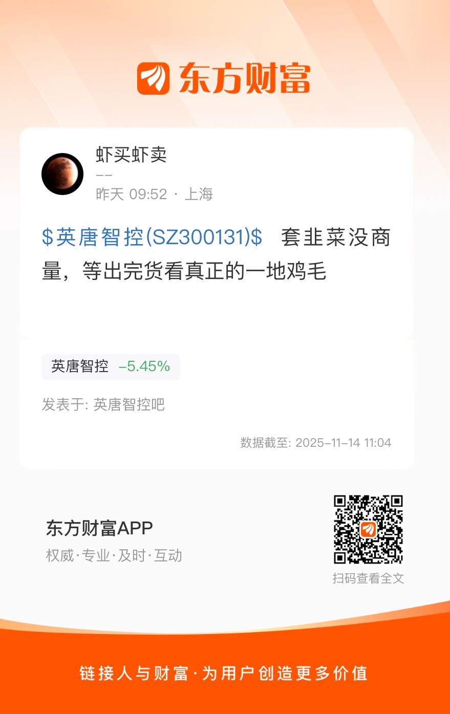 $英唐智控(SZ300131)$  套韭菜没商量,等出完货看真正的一地鸡毛