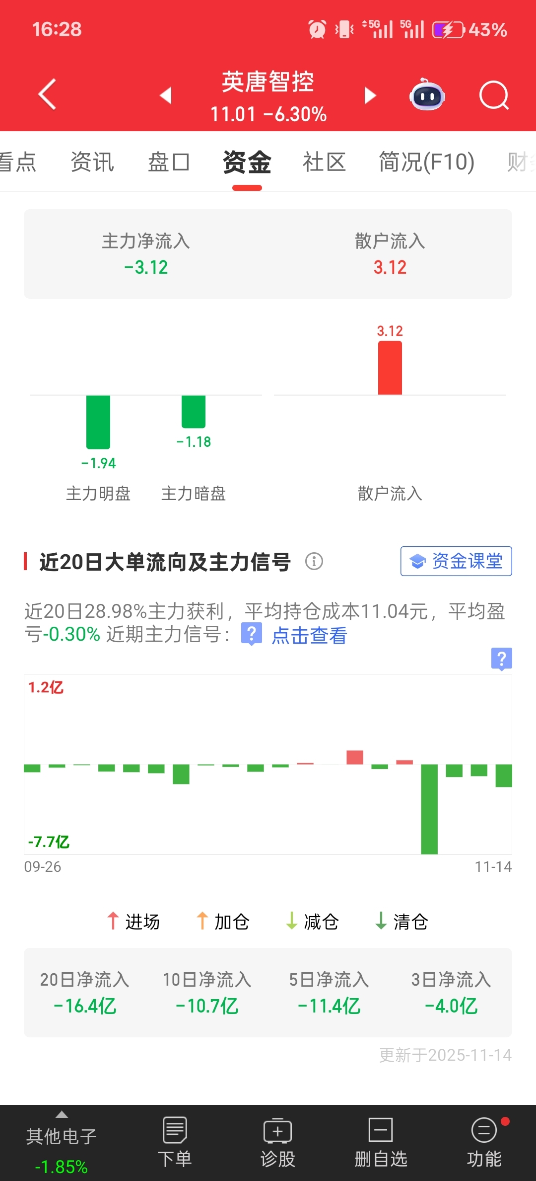 $英唐智控(SZ300131)$ 看这个就好了,资金都是持续流出的,近期很难再起来了,上面套牢盘又不肯割肉,你们自己看看吧里的评论都觉得要反弹了就必不可能反弹的,能救一个是一个,老鼠仓害人不浅