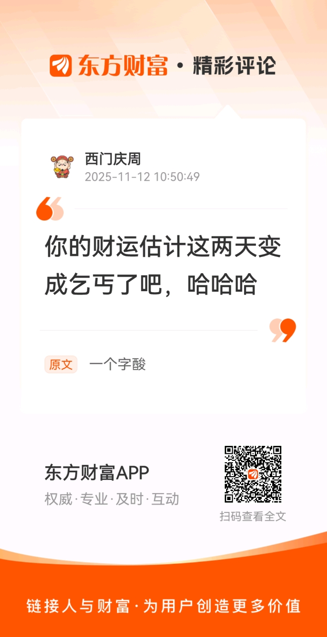 温馨提示: 1.根据《证券法》规定,禁止编造、传播虚假信息或者误导性信息,扰乱证券市场;2.用户在本社区发表的所有资料、言论等仅代表个人观点,与本网站立场无关,不对您构成任何投资建议。用户应基于自己的独立判断,自行决定证券投资并承担相应风险。《东方财富社区管理规定》