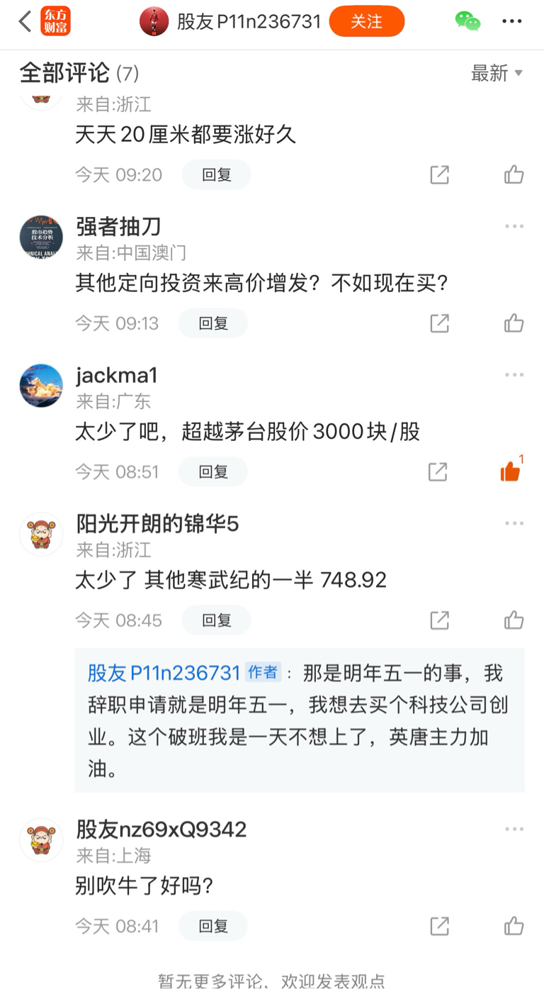 哈哈哈 这帮人 主力都要笑死了 都要超茅台 超寒武纪 行 继续做梦吧