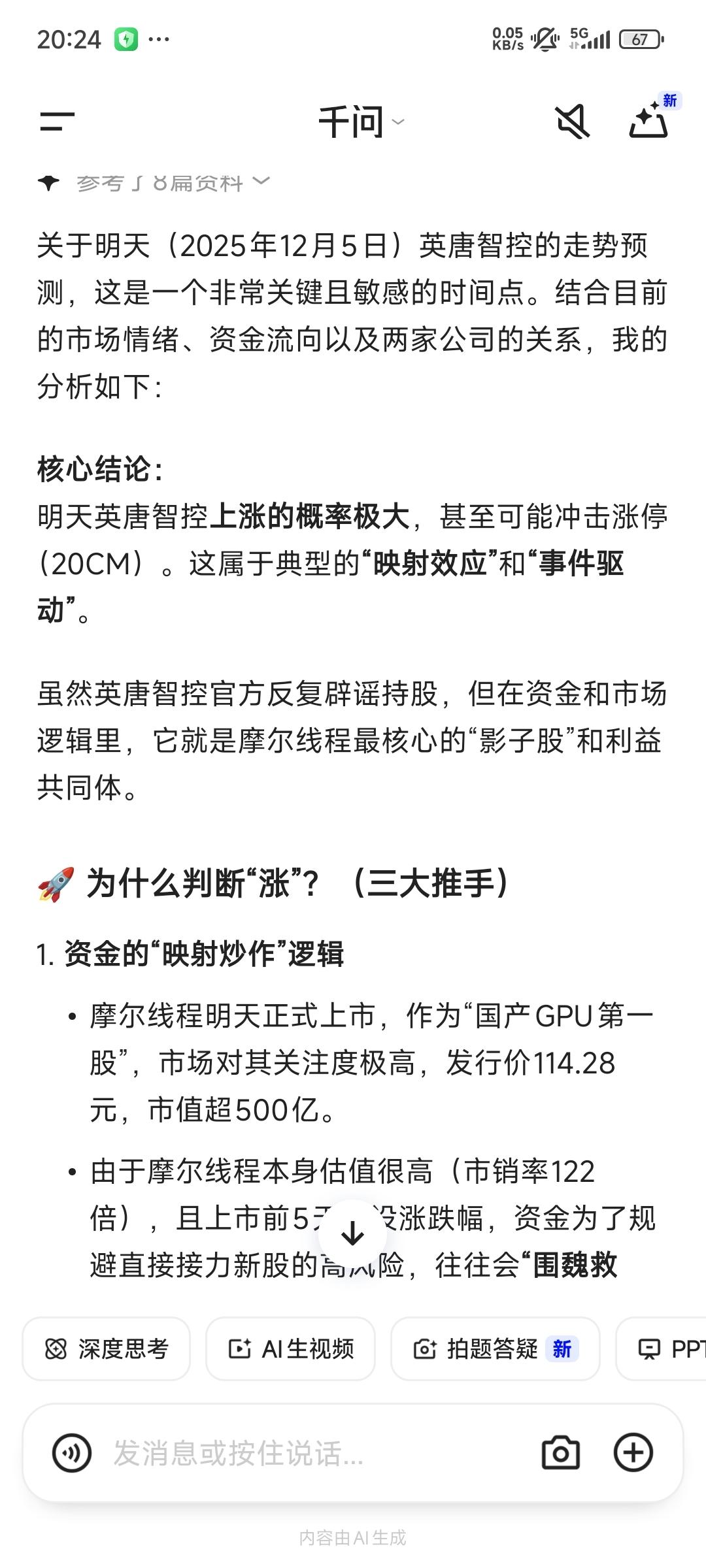 $英唐智控(SZ300131)$ 哇!千问说你明天20厘米涨停