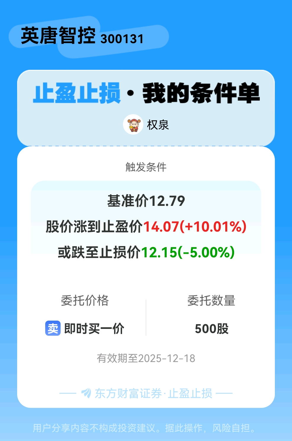 #条件单交流# #止盈止损晒单# 一位股神设置了一个止盈止损条件单,接下来就是见证奇迹的时刻~$英唐智控(SZ300131)$