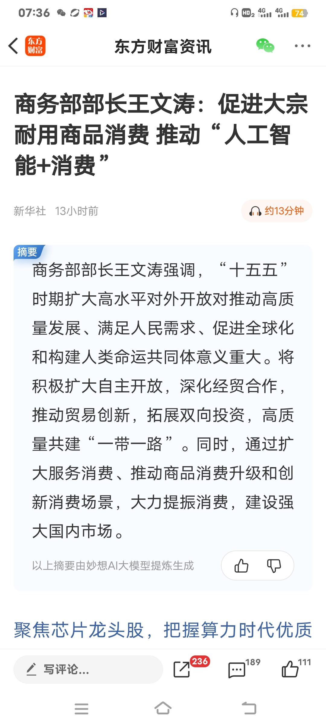 $英唐智控(SZ300131)$ 重磅!商务部长王文涛力推《人工智能十消费》英唐智控直接踩中政策风口!
