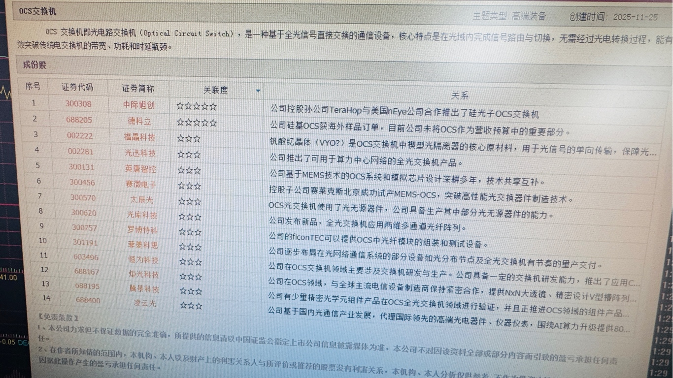 $英唐智控(SZ300131)$ 昨天的大涨是因为OCS交换机板块,英唐已被通达信列为该板块股票