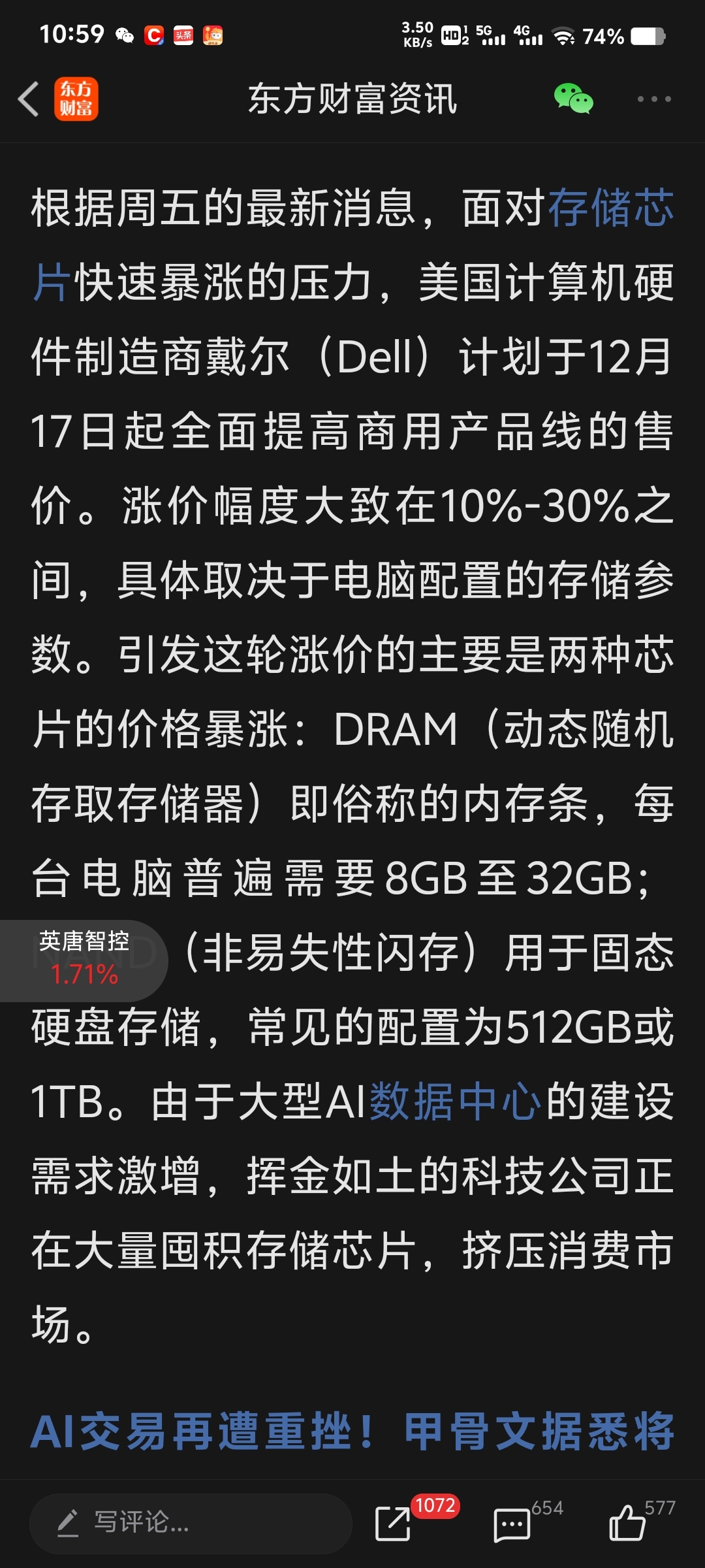 $英唐智控(SZ300131)$ 美股大跌,但存储芯片要涨价,其他股票估计要晕菜,但存储芯片的英唐智控估计要拉长阳