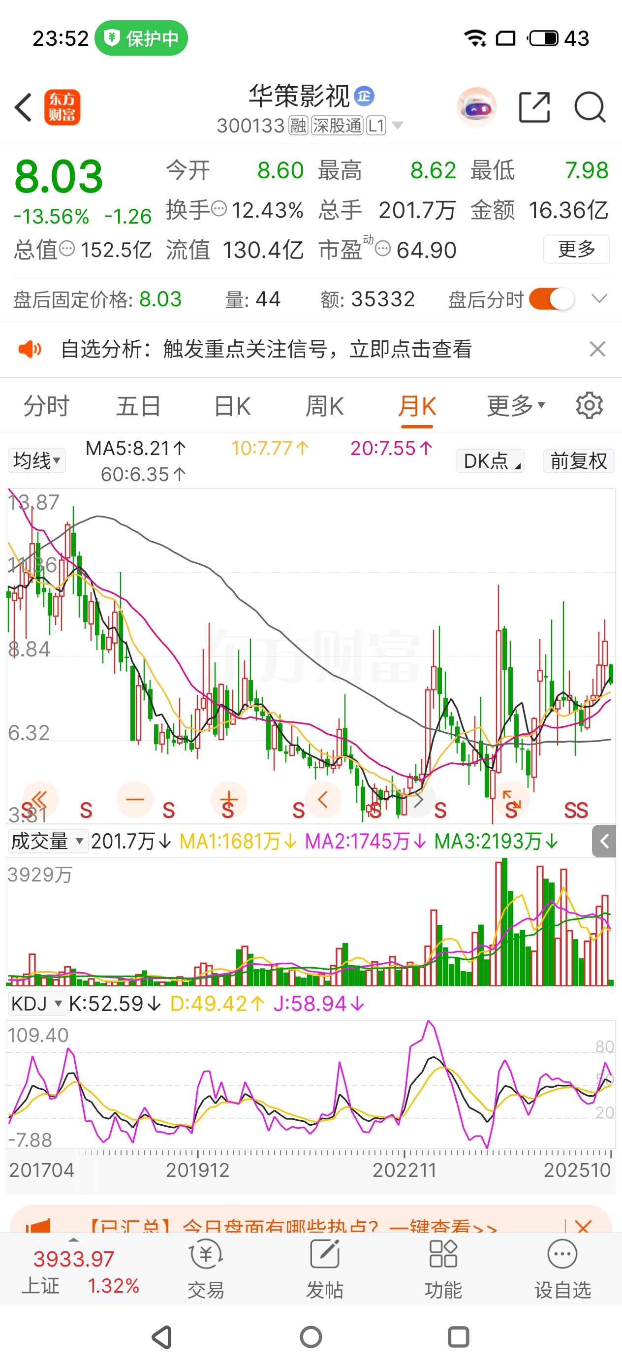 $华策影视(SZ300133)$ 月线形态和成交量分析,主力运作手法志在长远