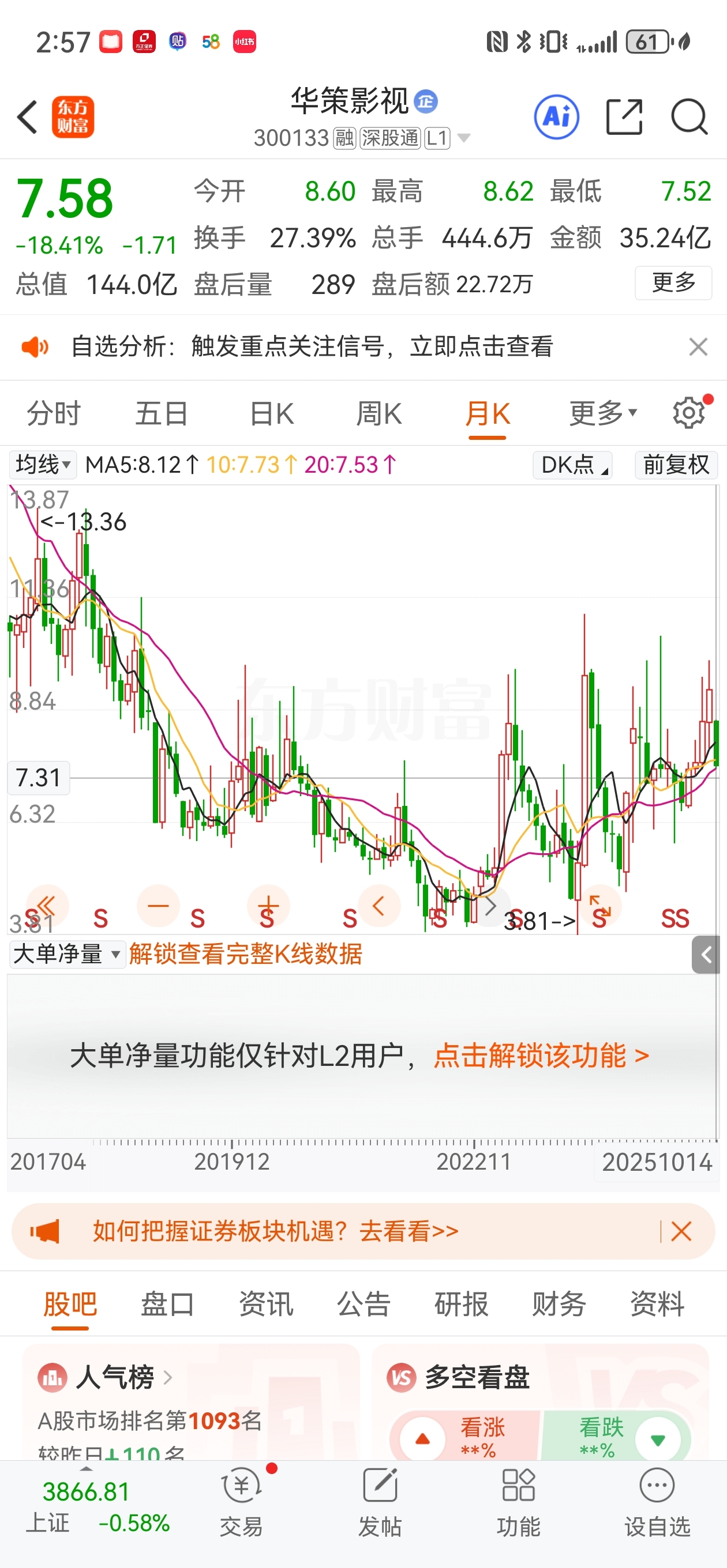 $华策影视(SZ300133)$ 节后连续4个交易日下跌,跌幅18.41%