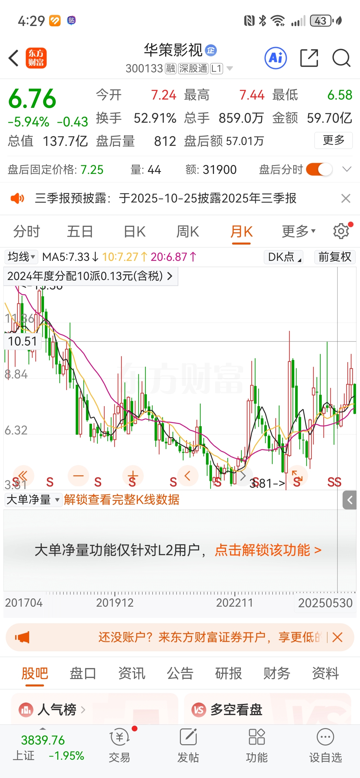 $华策影视(SZ300133)$ 目标价5月收盘的6.76元,把6月+7月+8月+9月的涨幅全部跌掉,6.76这个价格相对安全!