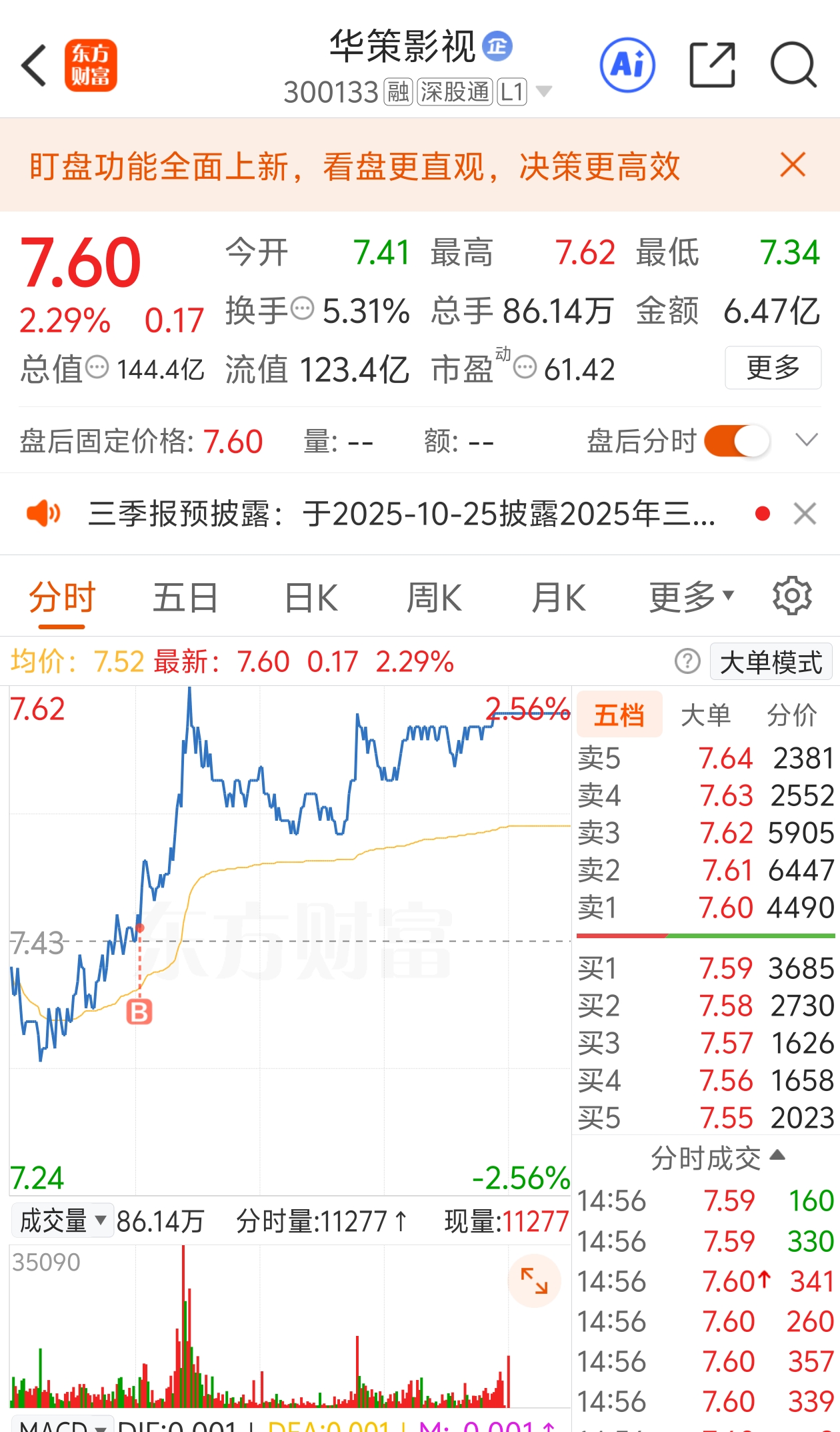 $华策影视(SZ300133)$ 手是真的黑,早上那么多影视概念股都是水下我抄了。