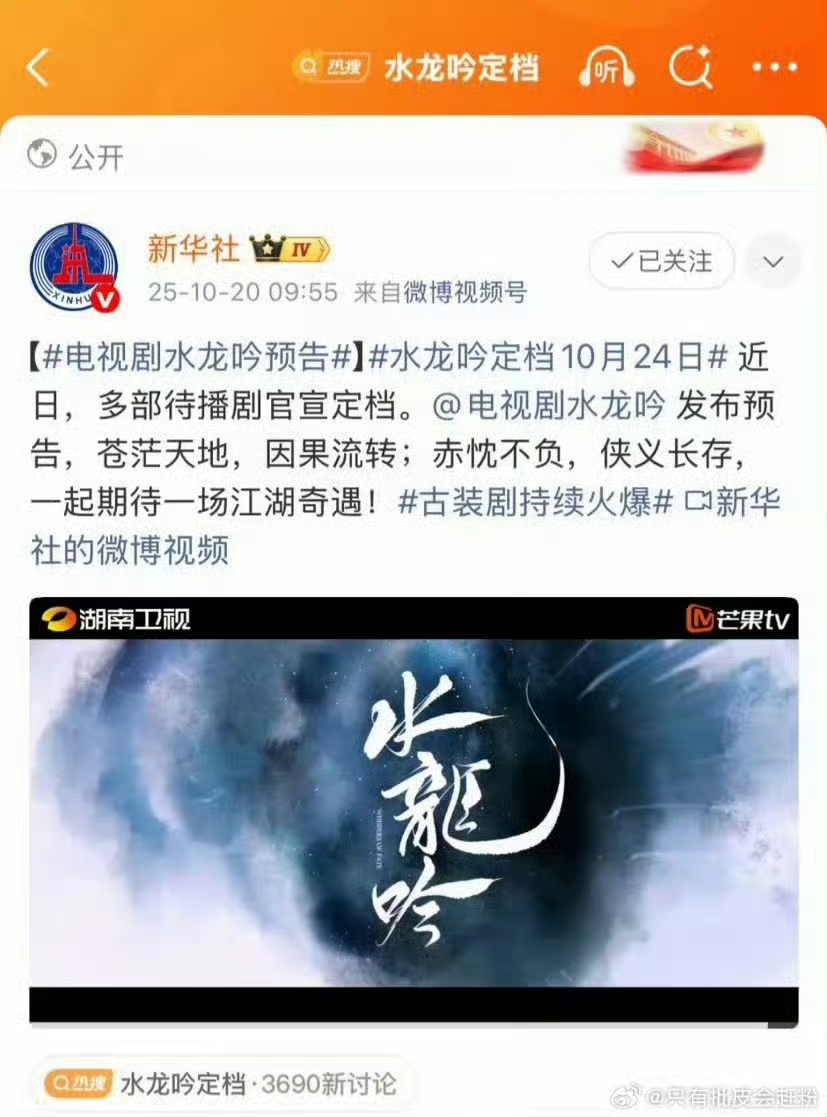 $华策影视(SZ300133)$ 新华社首发水龙吟预告