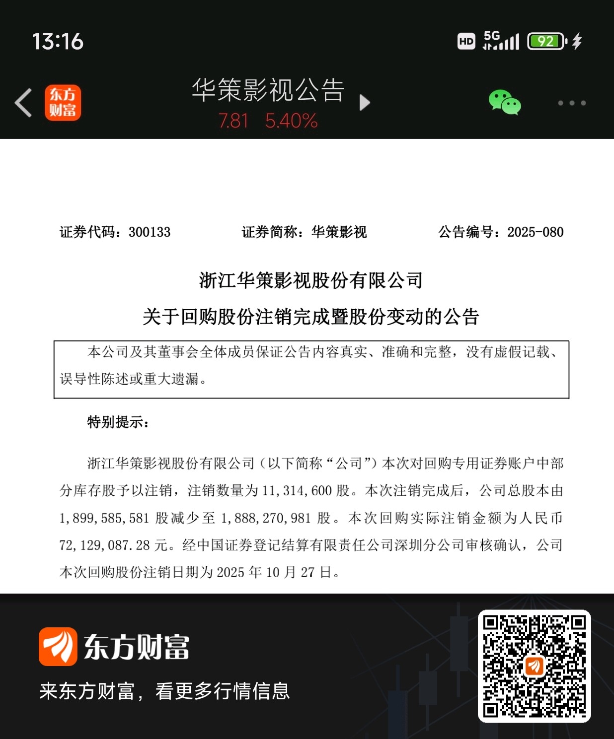 $华策影视(SZ300133)$ 华策影视回购全部完成,后面要搞事情了