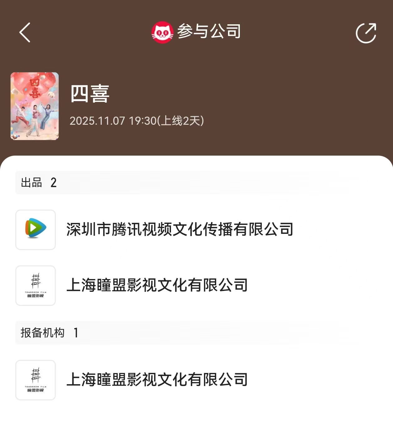一、《四喜》的出品方是腾讯视频和瞳盟影视;
