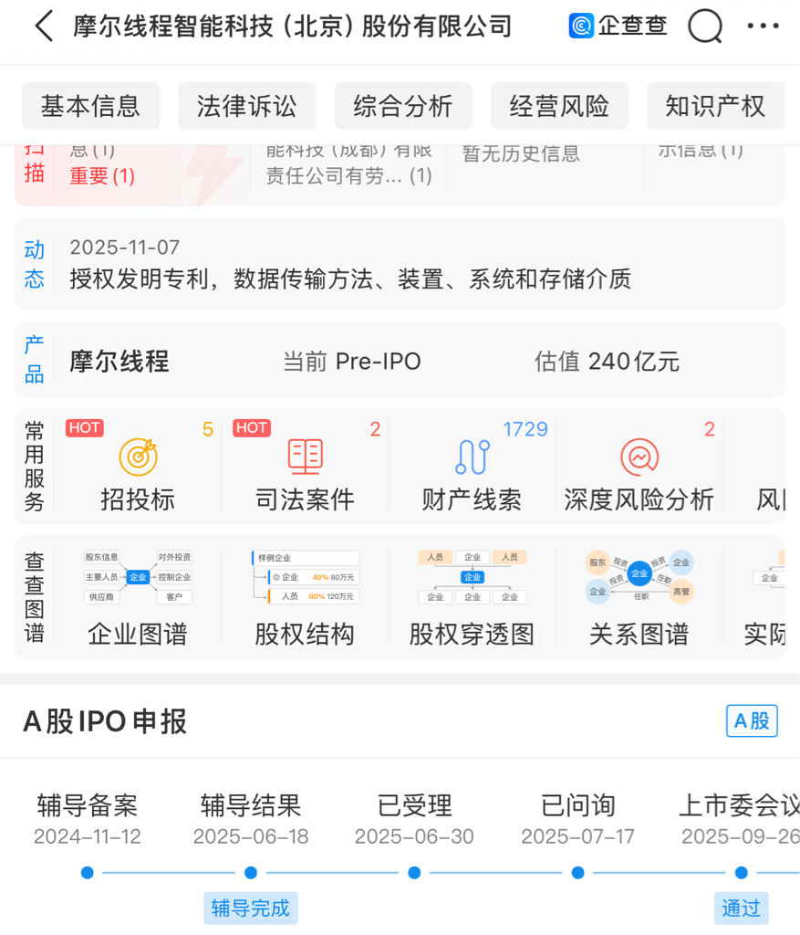 按摩尔线程进度,明年4月份才有机会,辅导备案到同过一年时间