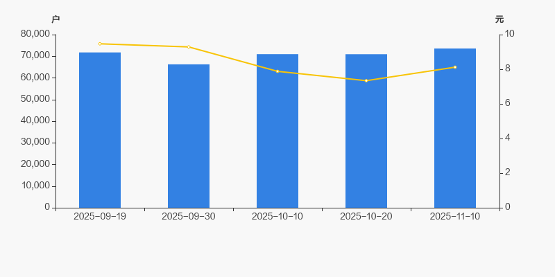 2025年9月19日至今,公司股东户数有所增长,区间涨幅为2.52%。2025年9月19日至2025年11月10日区间股价下降14.26%。